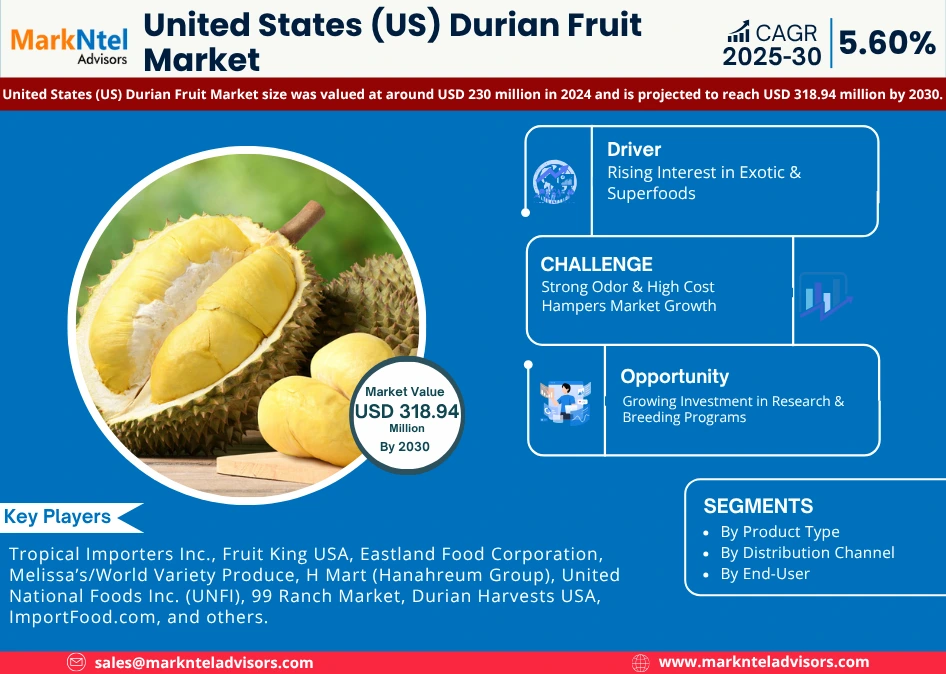 United States (US) Durian Fruit Market to Hit USD 318.94 Million by 2030- MarkNtel